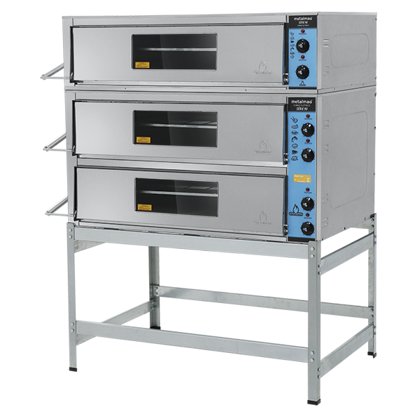 Este modelo possui três câmaras sobrepostas com medidas internas amplas (90x70 cm), permitindo o uso de assadeiras de diversos tamanhos. Sua estrutura é fabricada em aço inoxidável, o que garante máxima durabilidade, resistência à corrosão e facilidade de limpeza, além de um isolamento térmico eficiente em lã de vidro para manter o calor interno.
