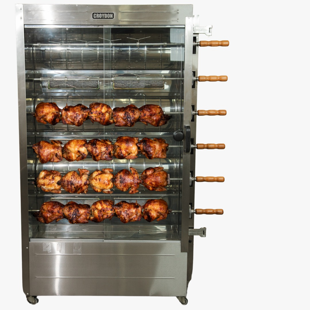 A Frangueira a Gás FRG6 da Croydon (também conhecida como Assador de Frangos) é um equipamento clássico e altamente eficiente, projetado para o assado uniforme de frangos inteiros e outros tipos de carnes através do sistema de queimadores infravermelhos.